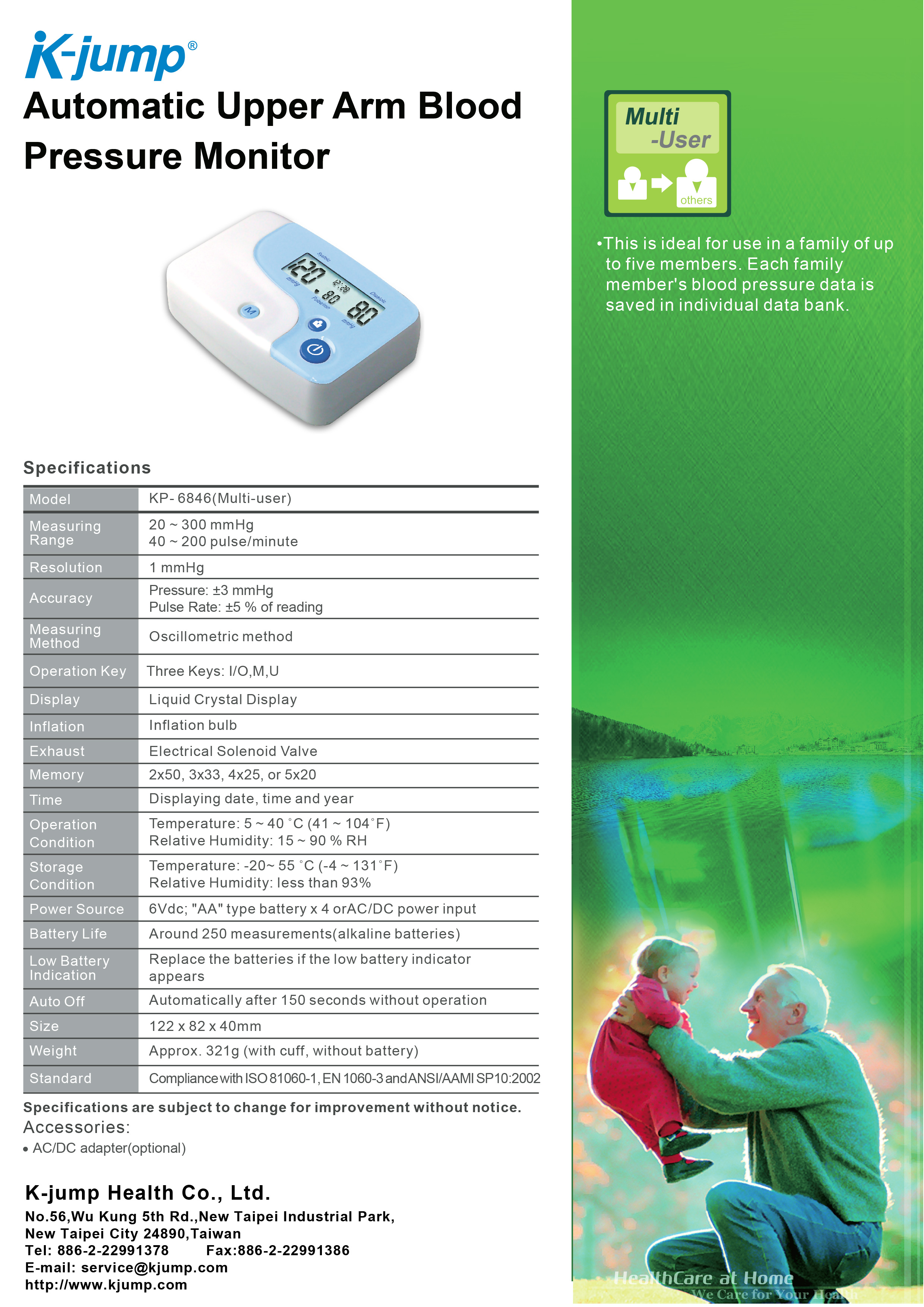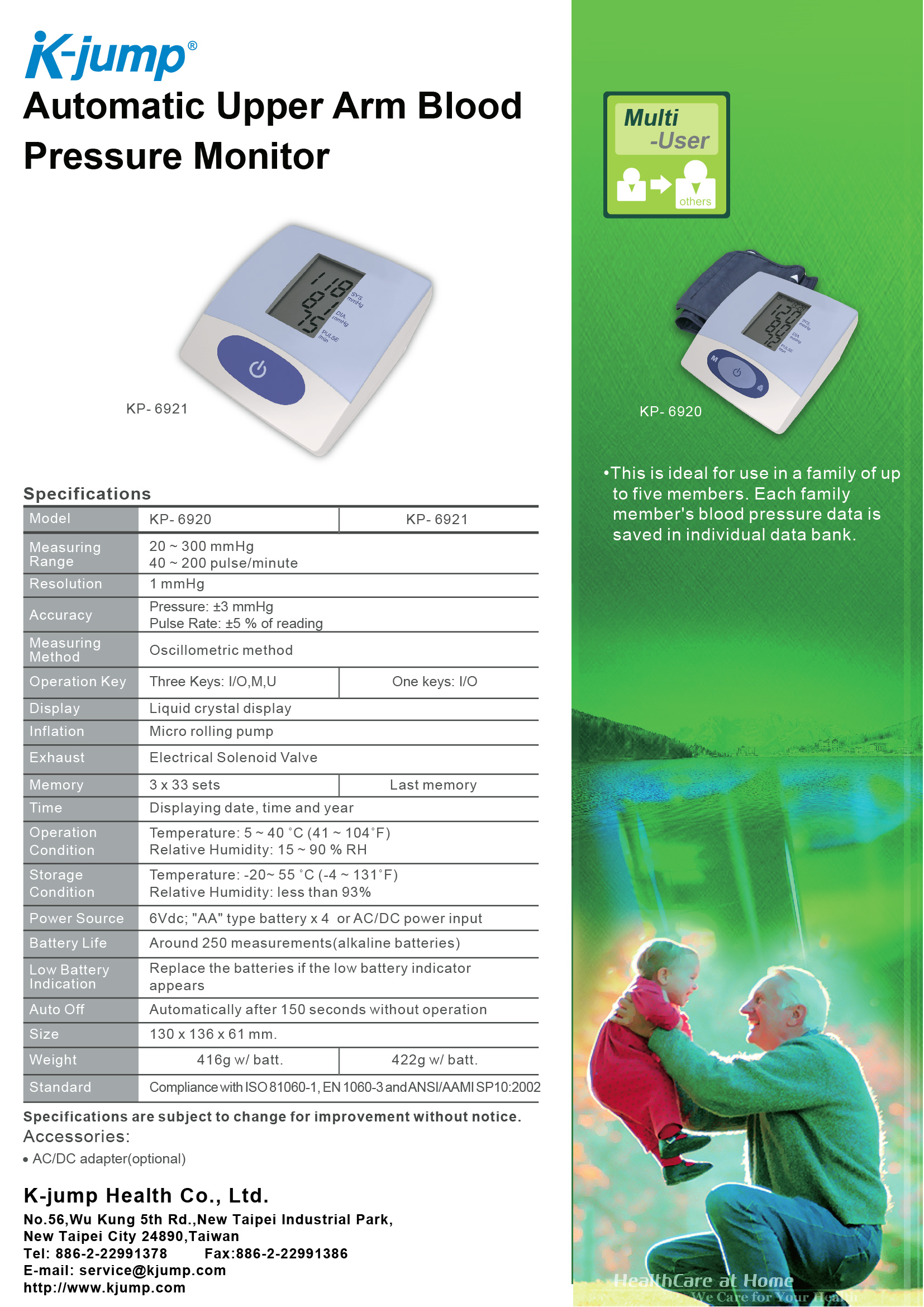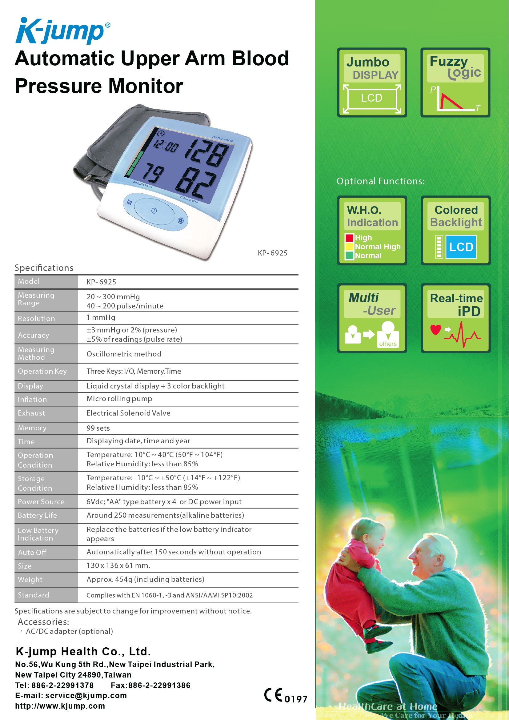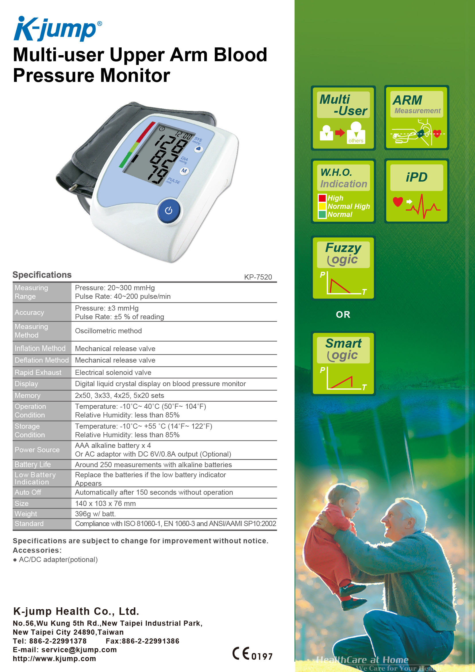 • Novel & Ultra slim design • Jumbo display • Folding stand for better view angle • W.H.O. Indication • Irregular Pulse Detection • Multi-User with memory Optional Functions: • Colored backlight • NFC & Bluetooth • Data Management • Support both Android and iOS