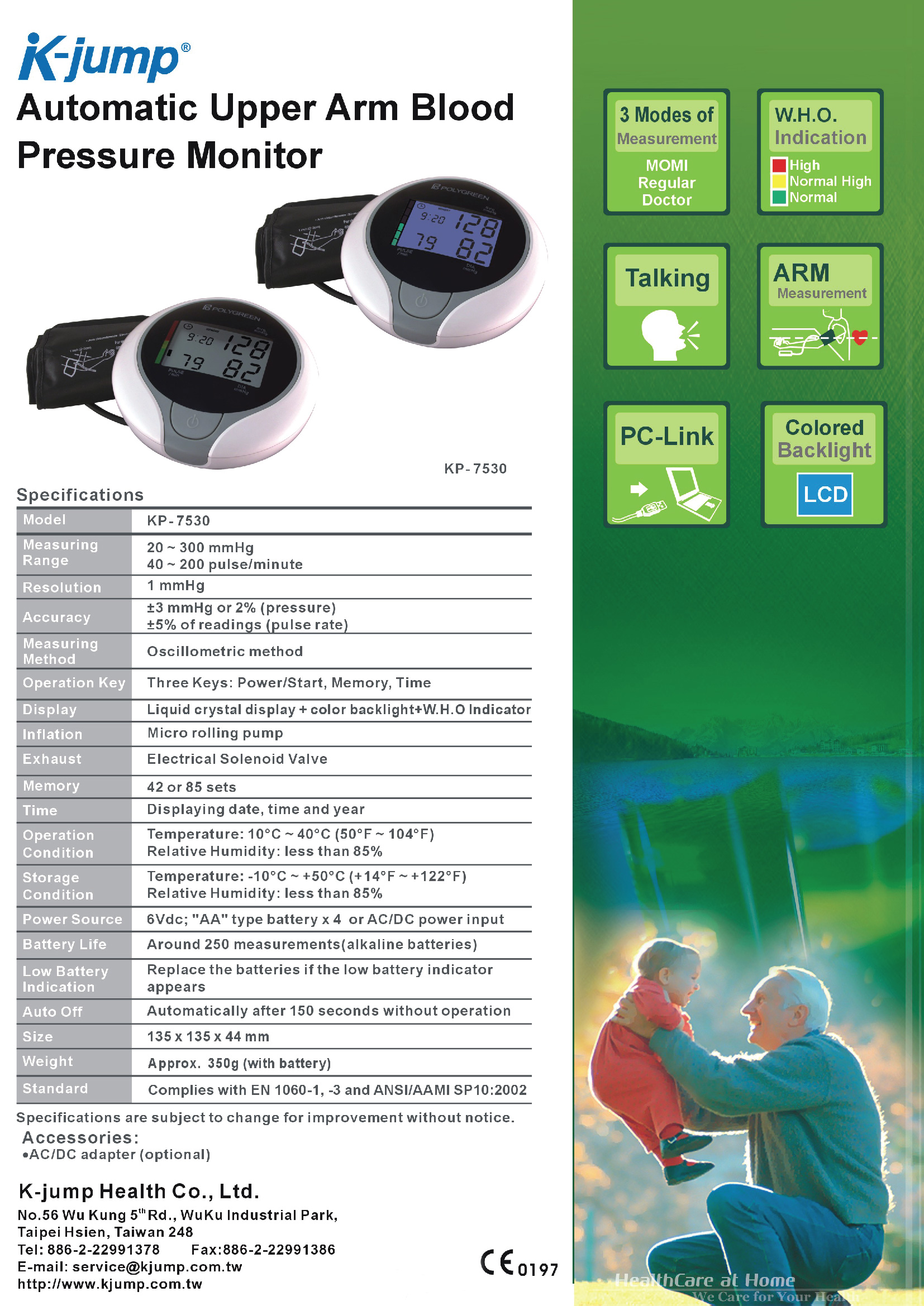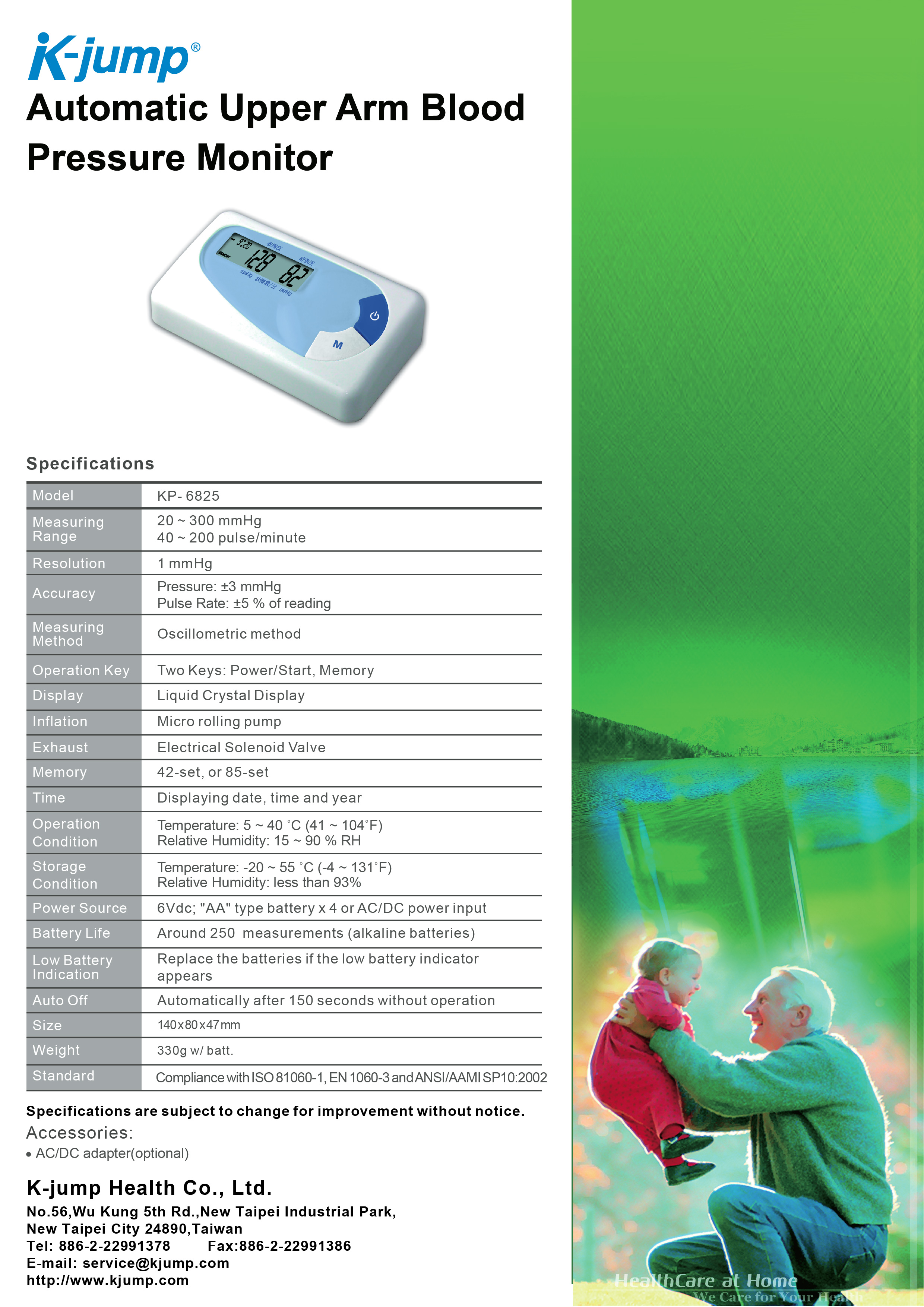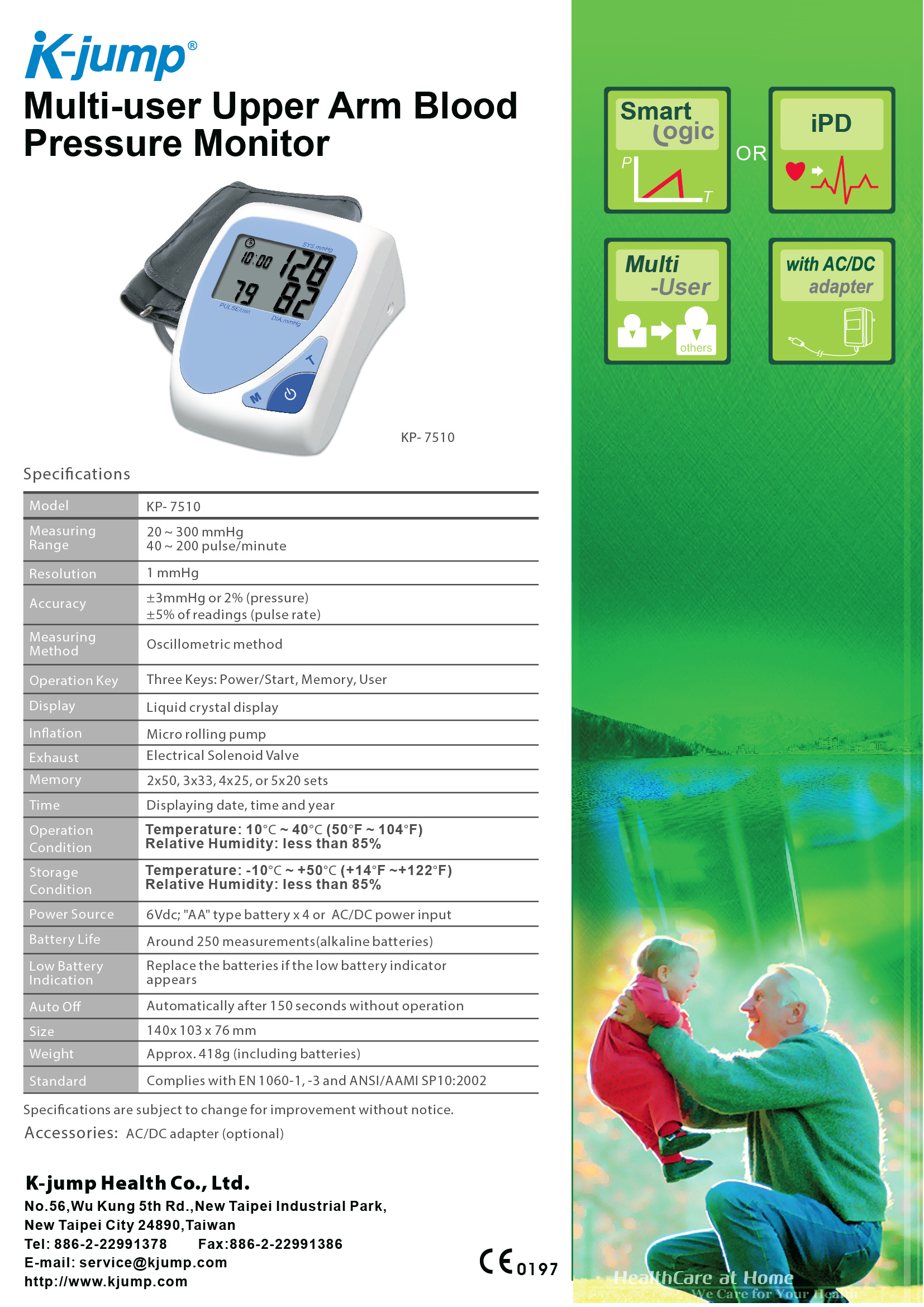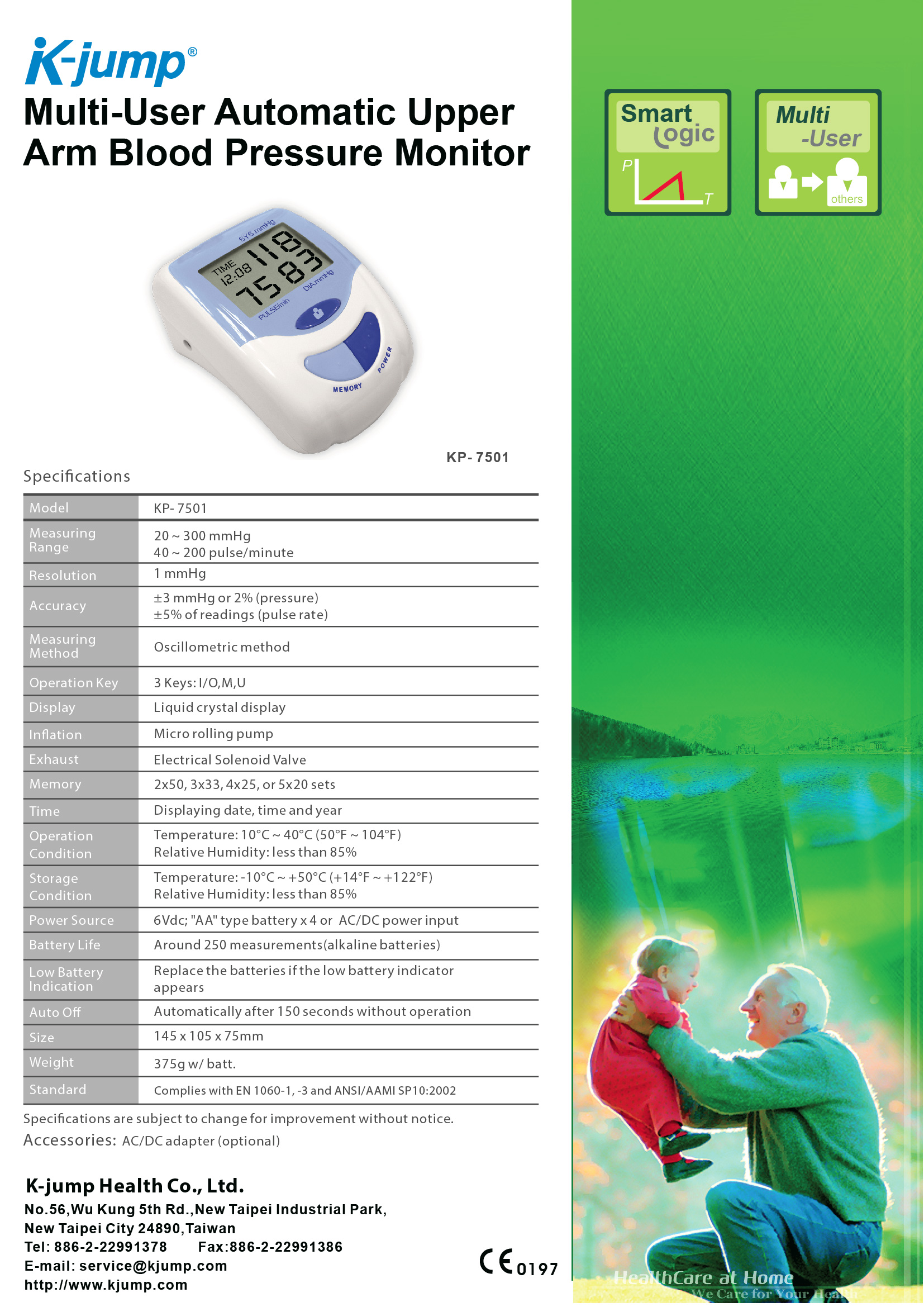 • Novel & Ultra slim design • Jumbo display • Folding stand for better view angle • W.H.O. Indication • Irregular Pulse Detection • Multi-User with memory Optional Functions: • Colored backlight • NFC & Bluetooth • Data Management • Support both Android and iOS