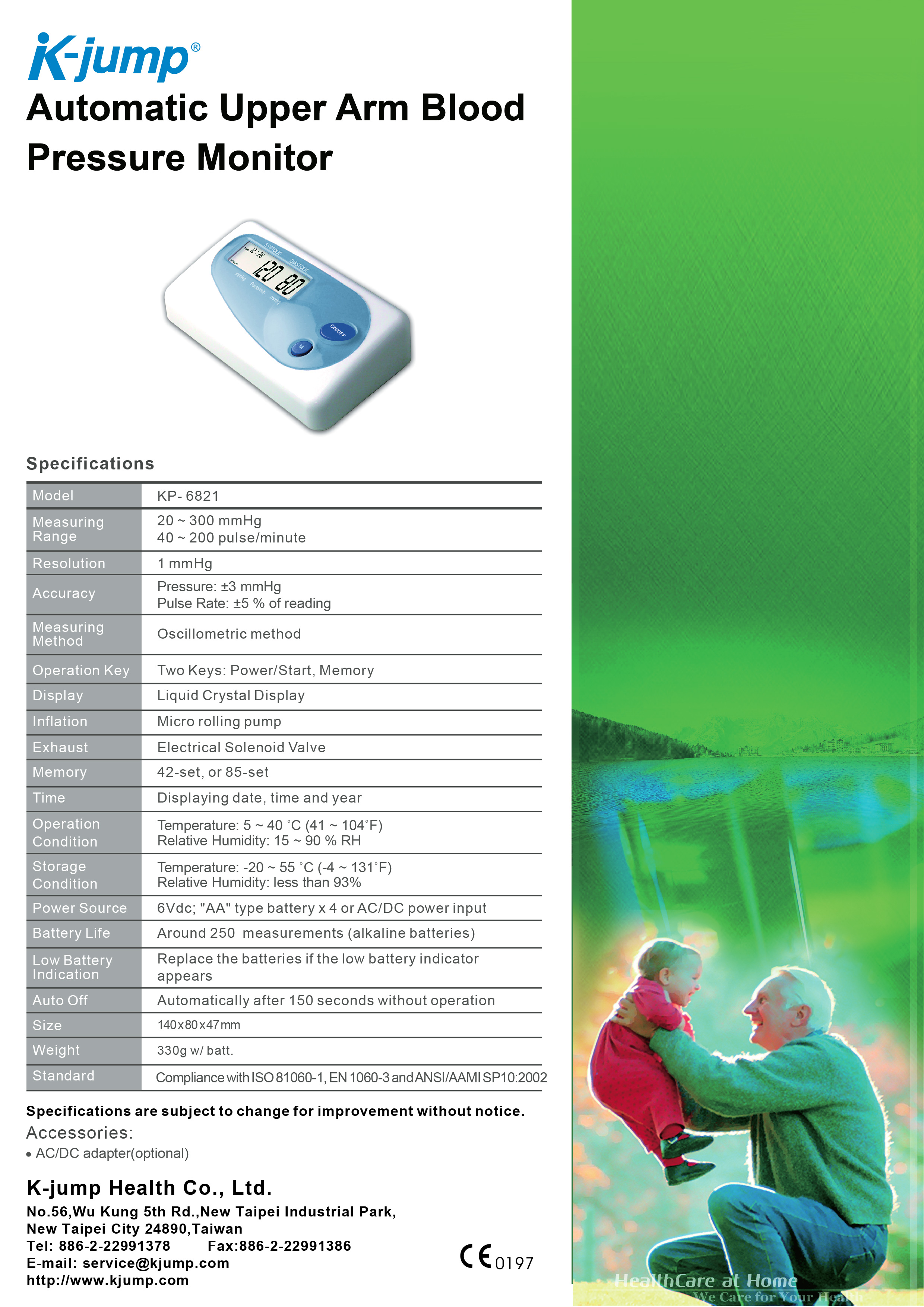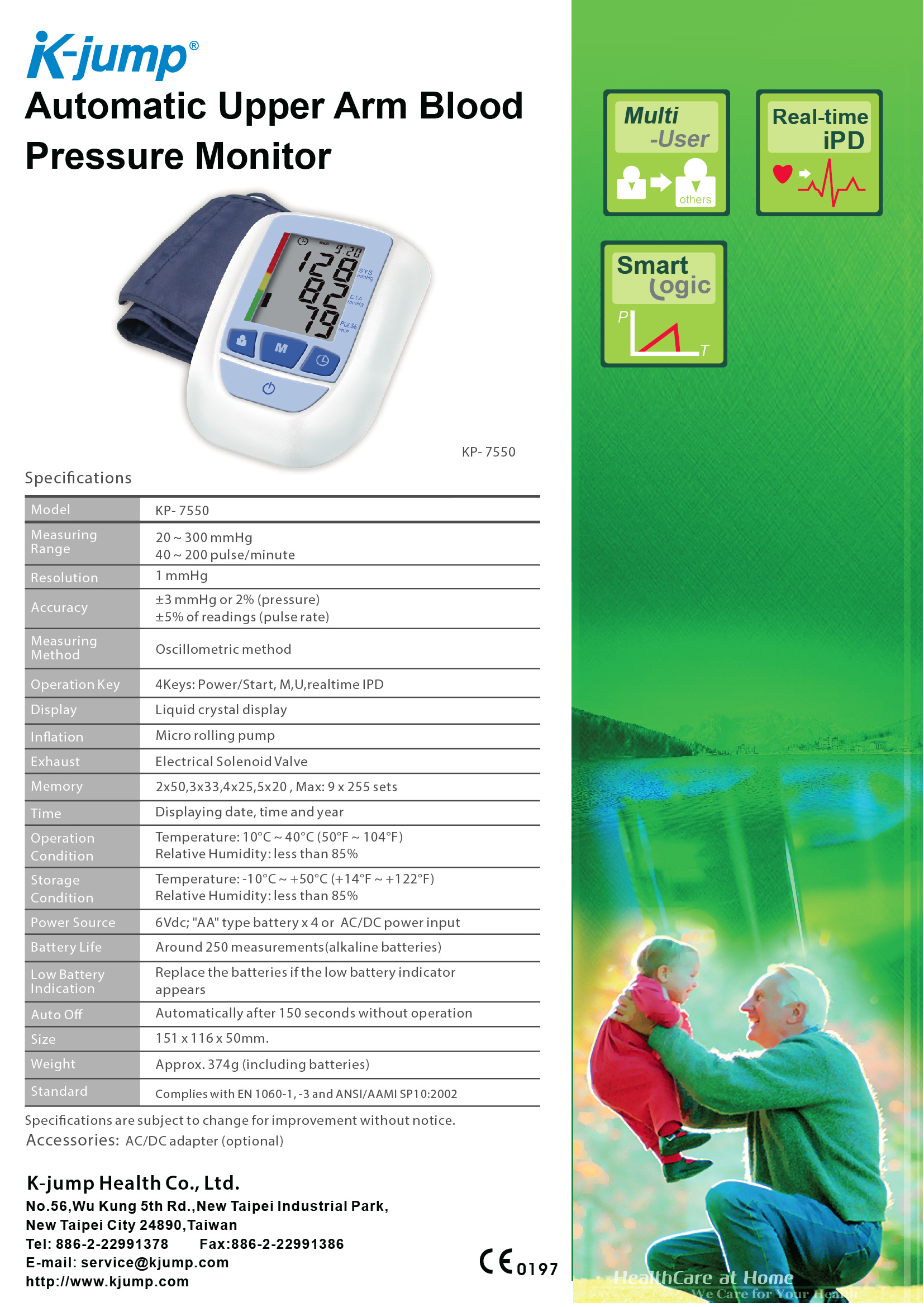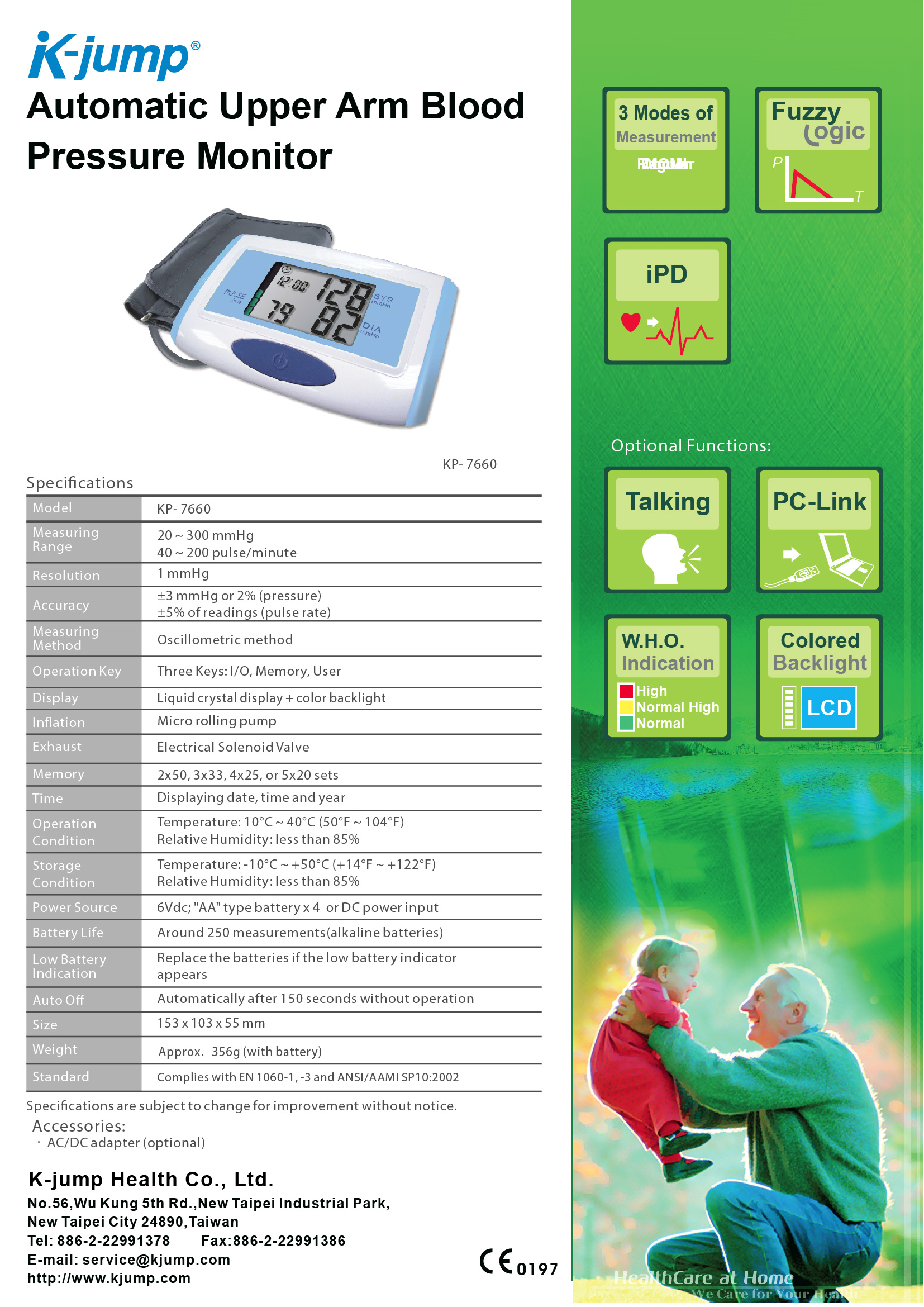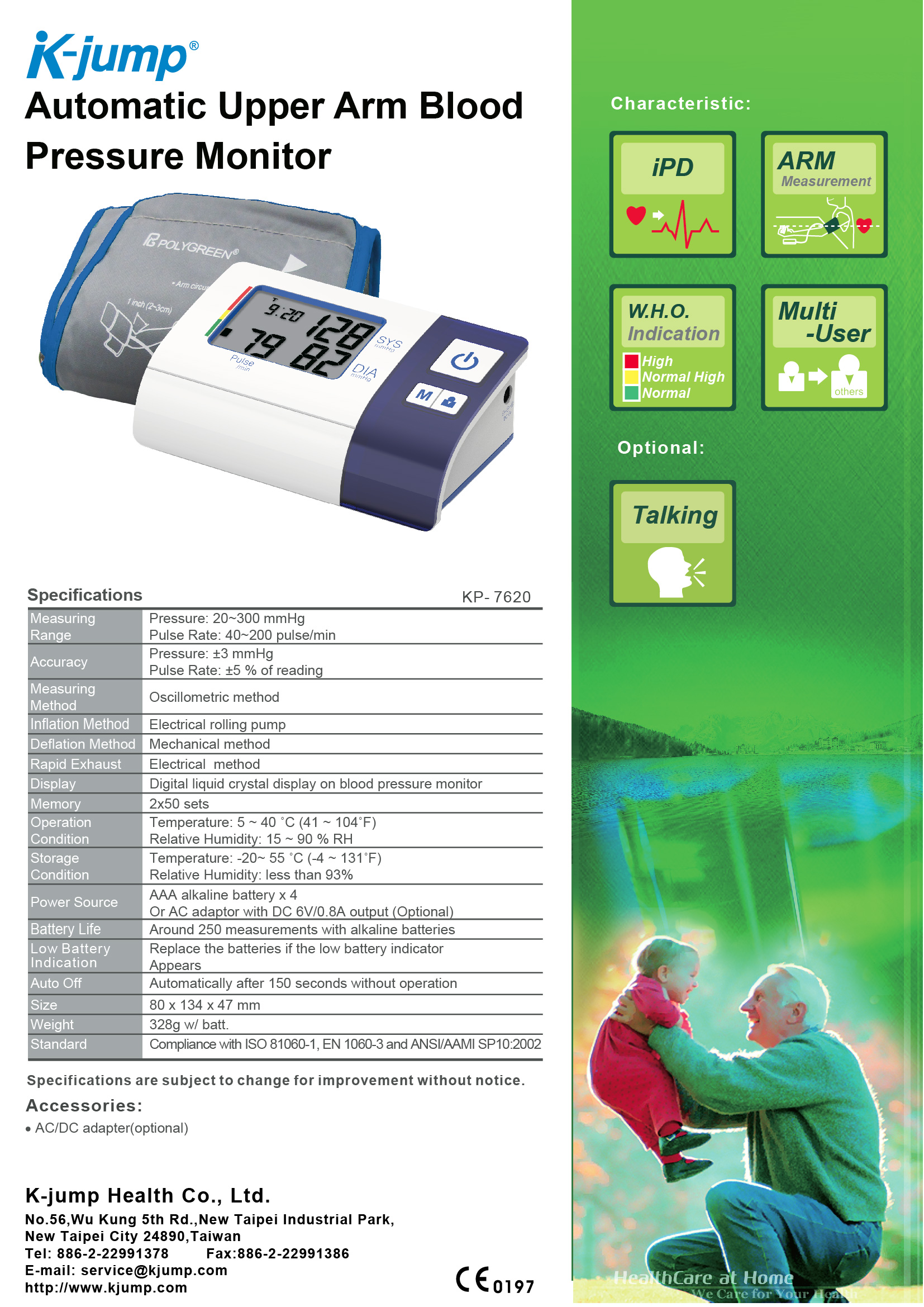 • Novel & Ultra slim design • Jumbo display • Folding stand for better view angle • W.H.O. Indication • Irregular Pulse Detection • Multi-User with memory Optional Functions: • Colored backlight • NFC & Bluetooth • Data Management • Support both Android and iOS